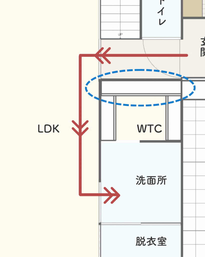 朝の身支度や、帰宅後の動線も、