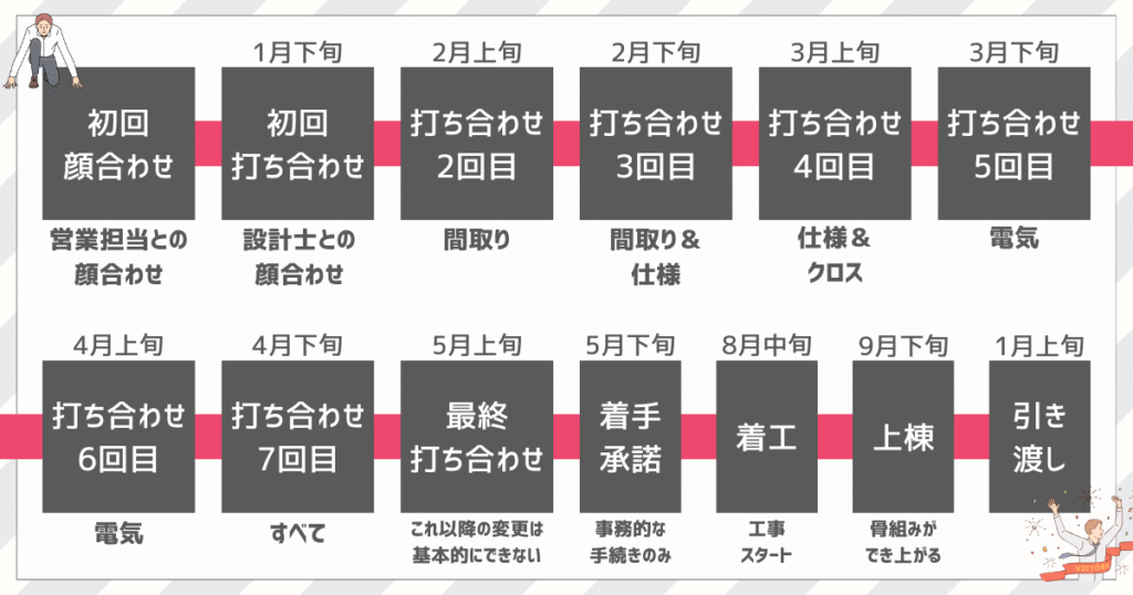 ※1月下旬に初回打ち合わせがあると想定した場合