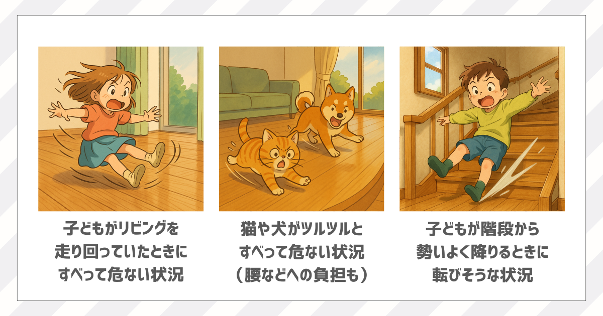 フローリングが見た目以上にすべりやすく、ヒヤッとした経験はありませんか?