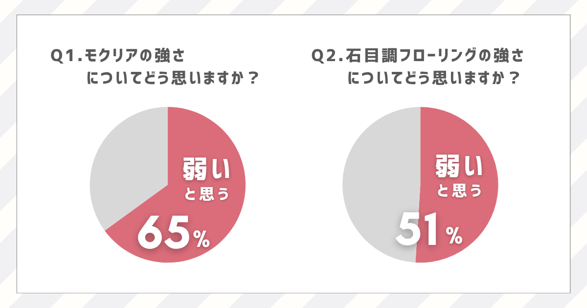 当ブログのInstagramで行ったアンケートでは「モクリアが弱い」と感じている方が約65%「石目調が弱い」と感じている方が51%という結果でした。