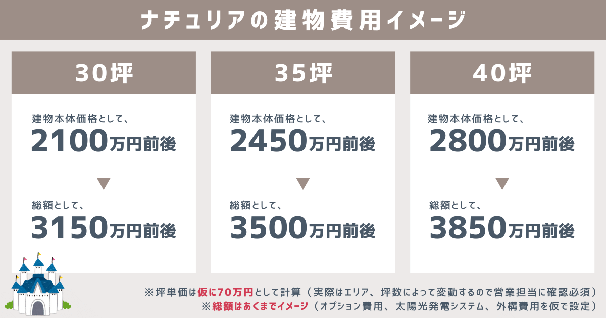 なお、35坪のナチュリアの坪単価が70万円の場合、