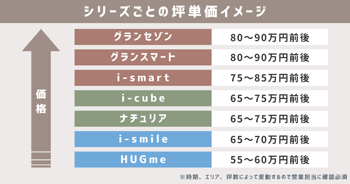 一条工務店の代表的なシリーズの坪単価は次の通りです。